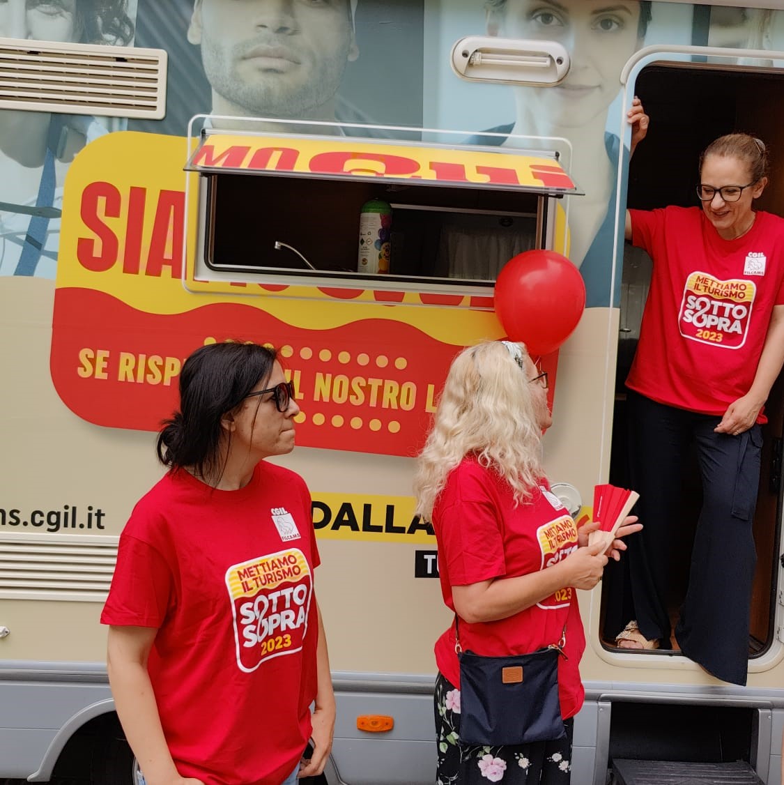 Nel capoluogo, l’ufficio mobile allestito in un camper, ha portato gadget e materiali informativi della campagna sul turismo stagionale a tanti operatori, dai pubblici esercizi agli operatori museali. Con lavoratrici e lavoratori segretari e funzionari Filcams hanno parlato di contratto nazionale di lavoro, modalità di assunzione, tutele, diritti.