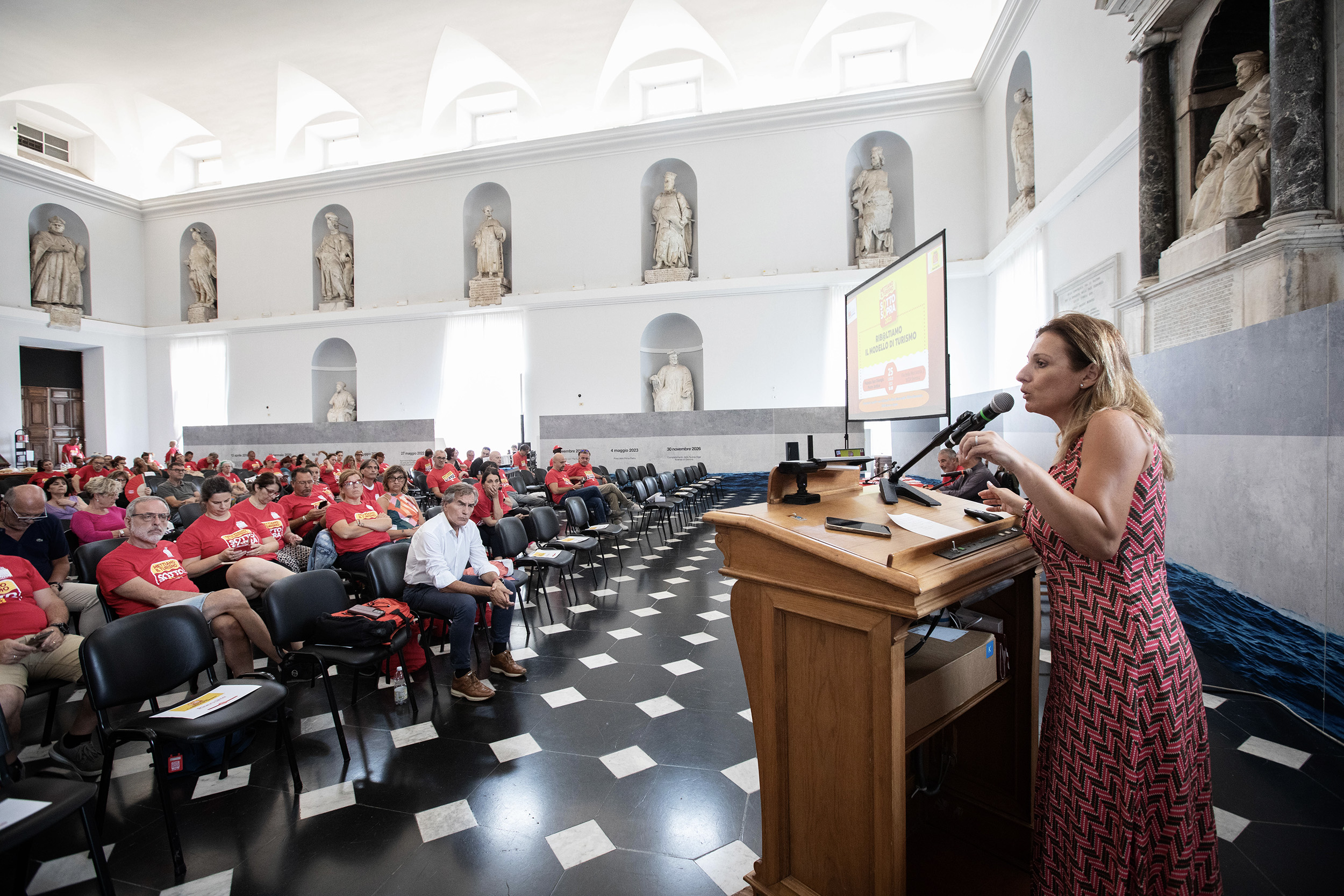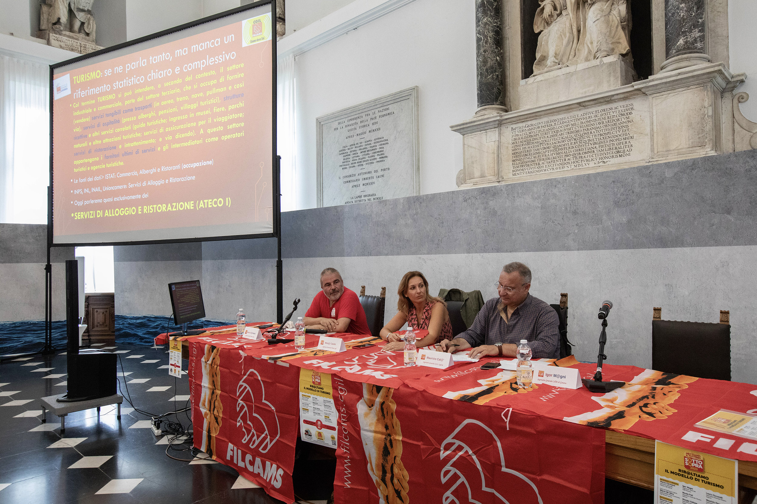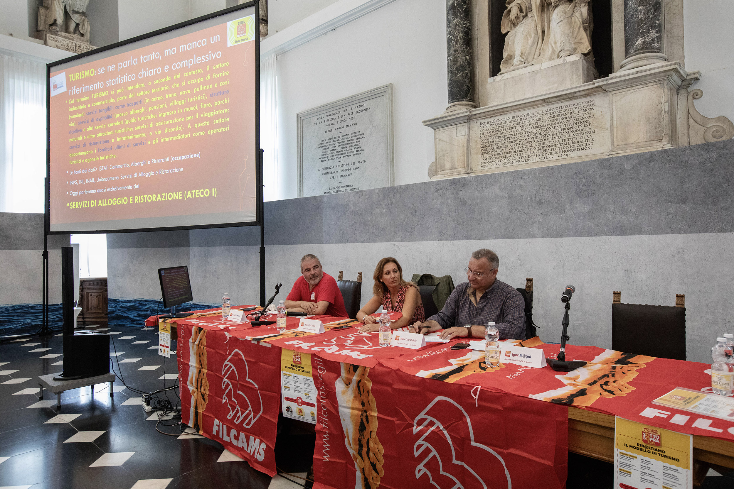Ribaltare il modello del turismo, questo l'assunto dal quale si è mossa la discussione organizzata dalla Filcams Cgil ligure il 25 luglio a Palazzo San Giorgio, in occasione della sesta tappa regionale del tour nazionale della campagna Filcams "Mettiamo il turismo SottoSopra" che sta attraversando il paese, regione per regione, per incontrare i lavoratori stagionali e fare il punto sui loro diritti.