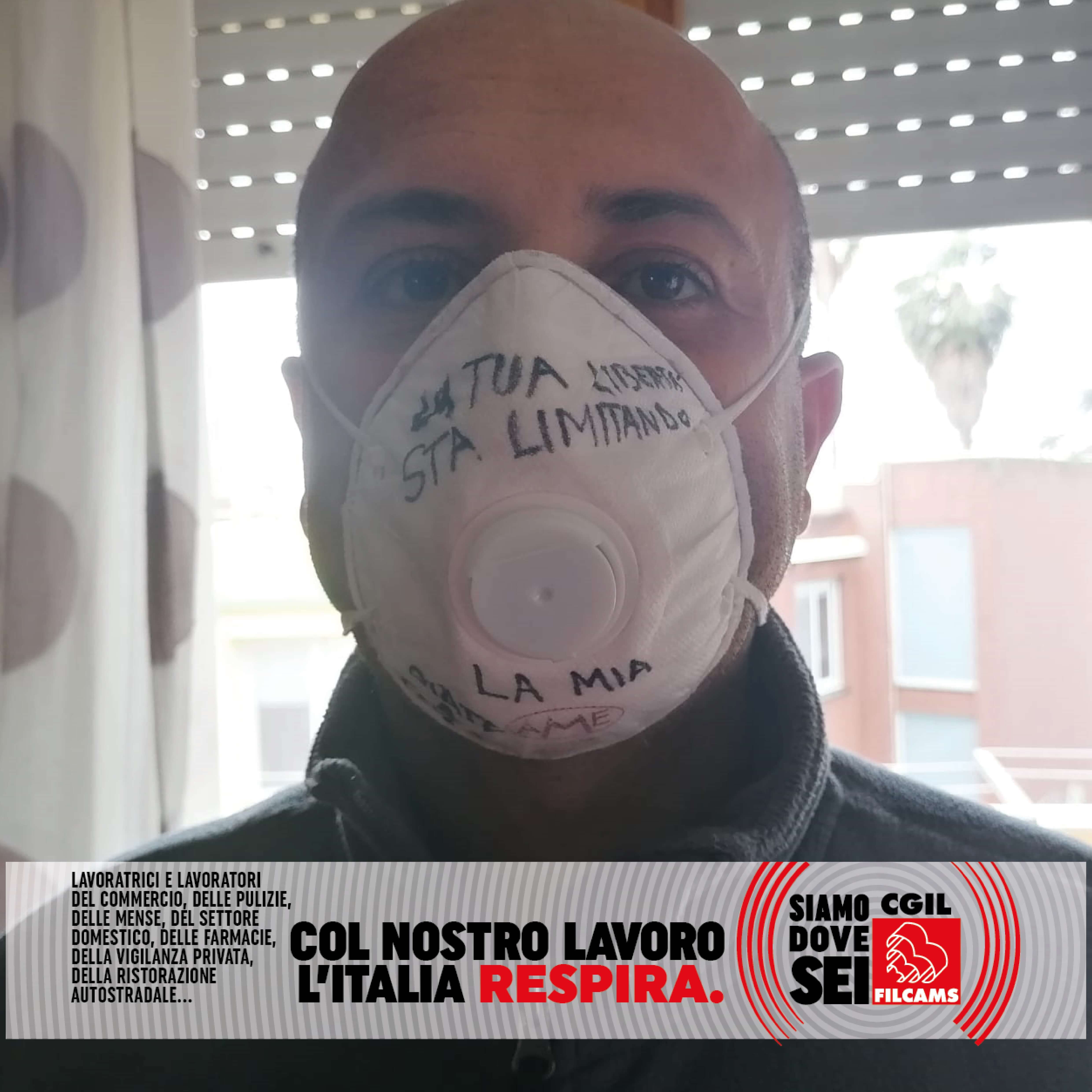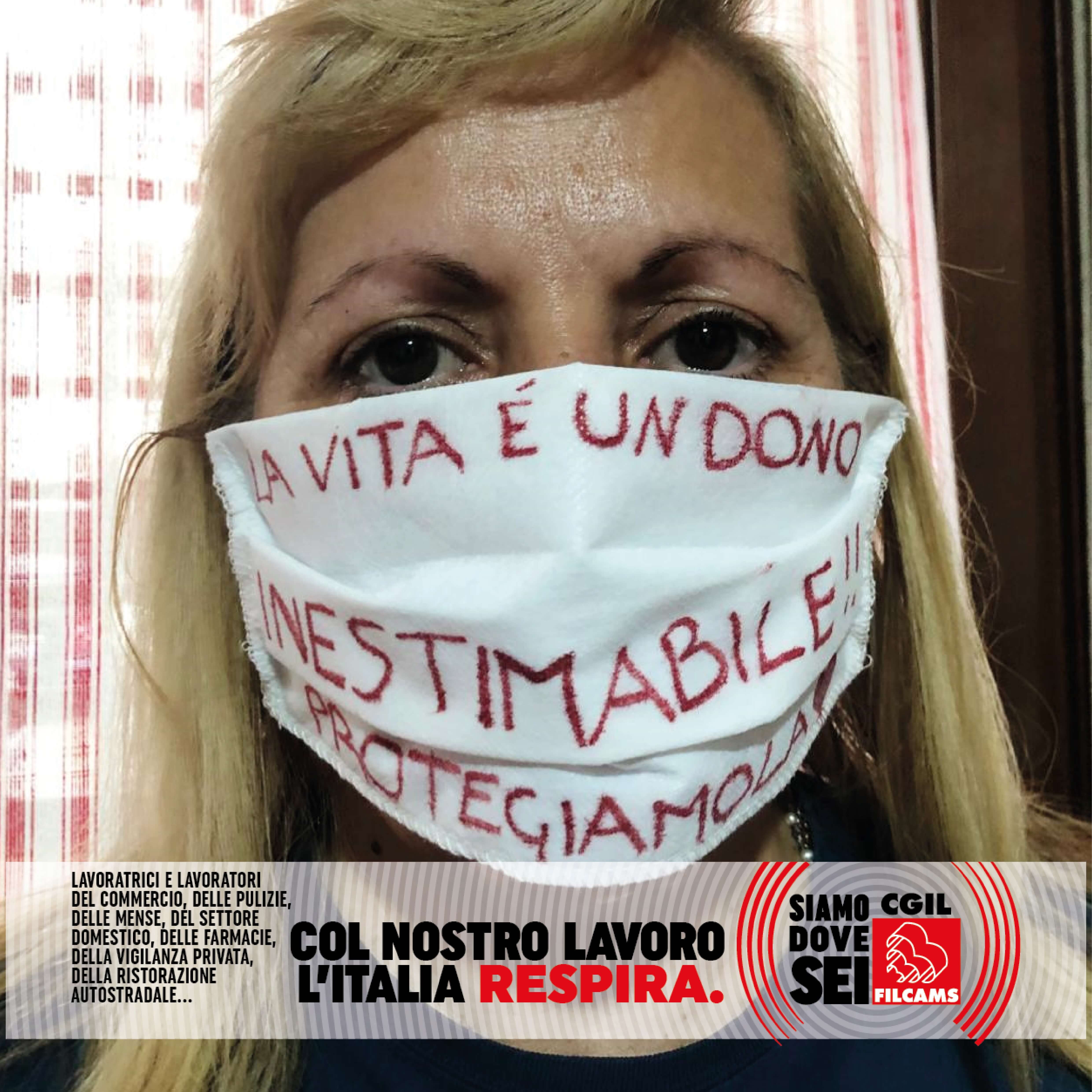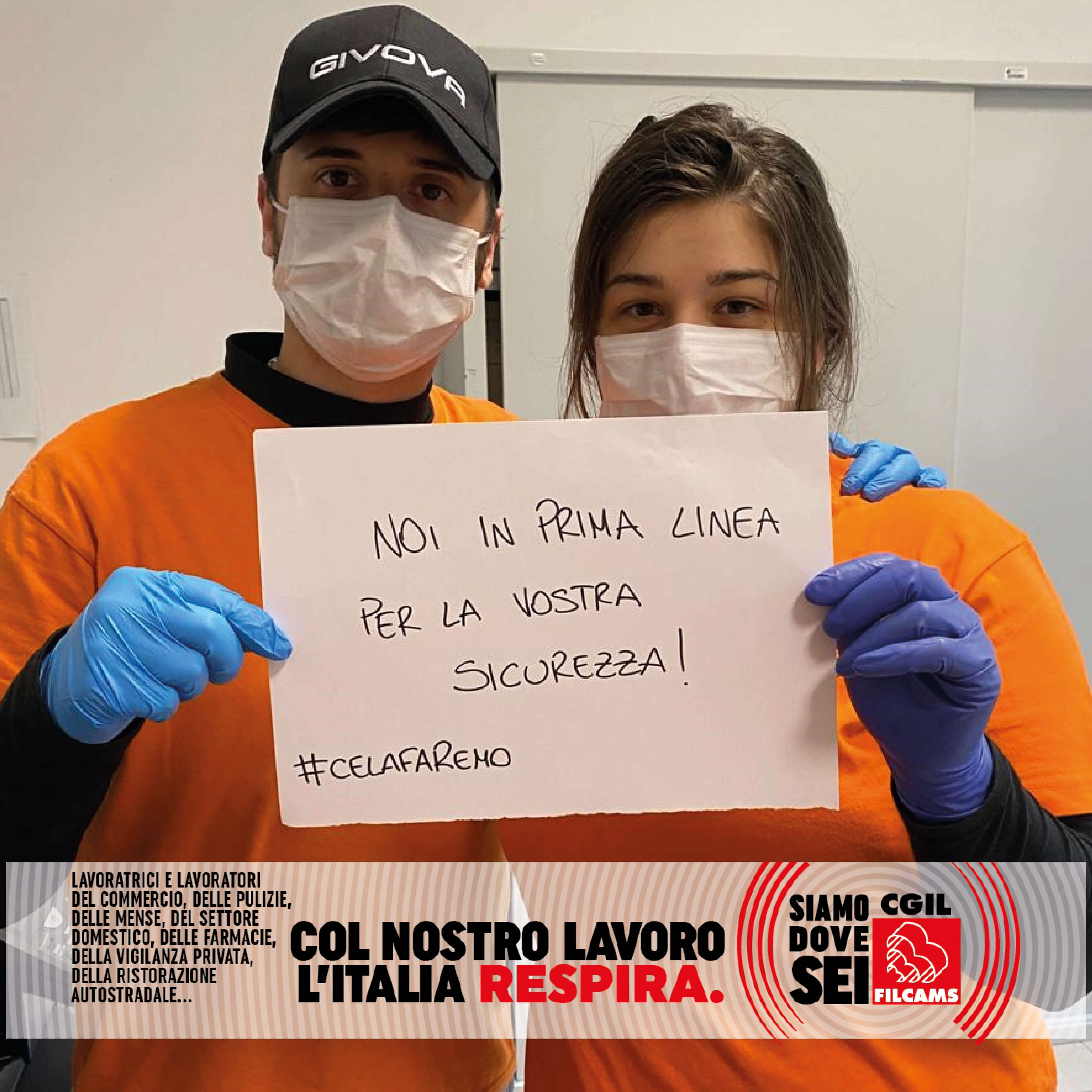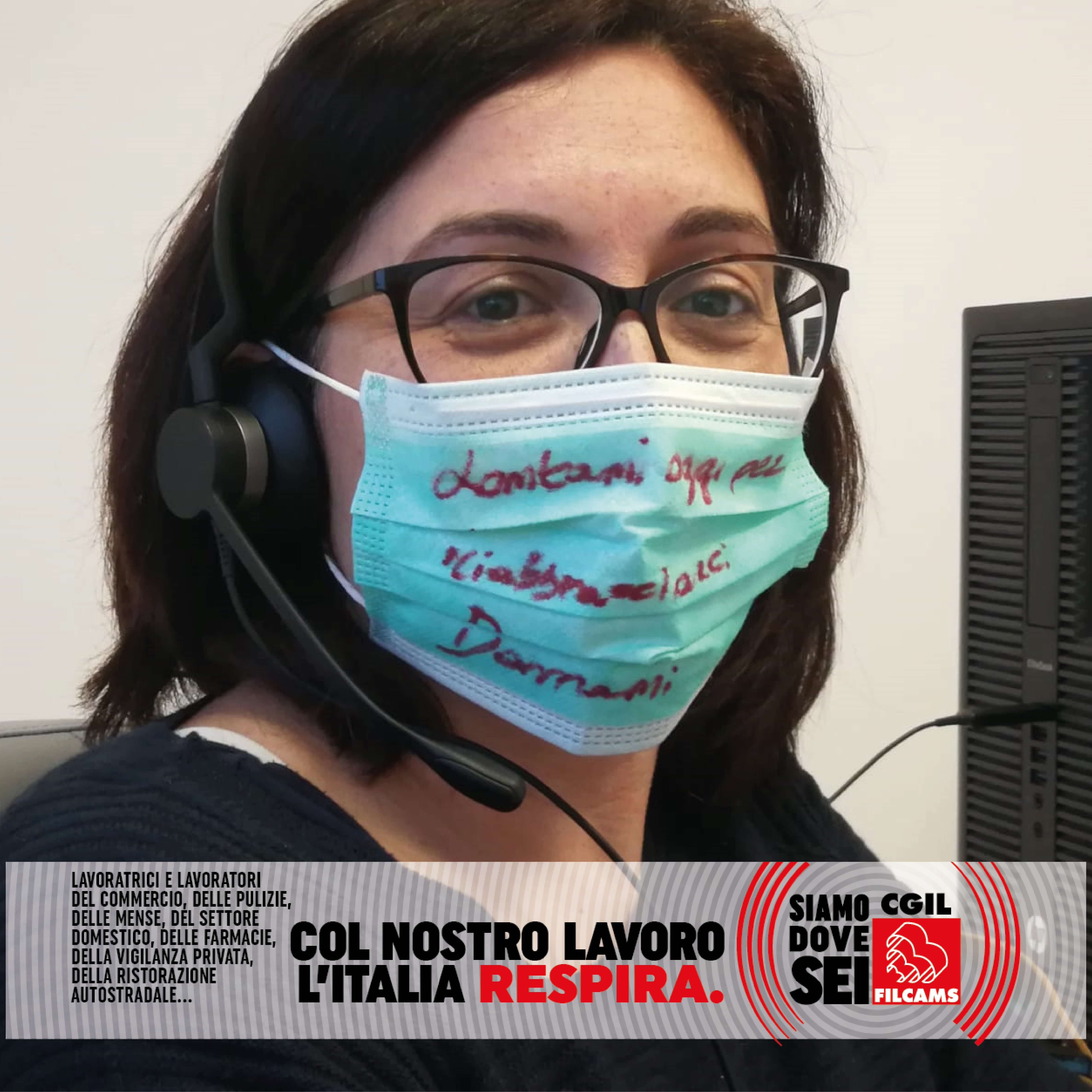 Le lavoratrici e i lavoratori del commercio, delle pulizie, delle mense, del settore domestico, delle farmacie, della vigilanza privata, della ristorazione autostradale, in prima linea durante l’emergenza sanitaria, lanciano i loro messaggi per ripartire in sicurezza: una foto con la mascherina con sopra un messaggio, una frase o un consiglio.