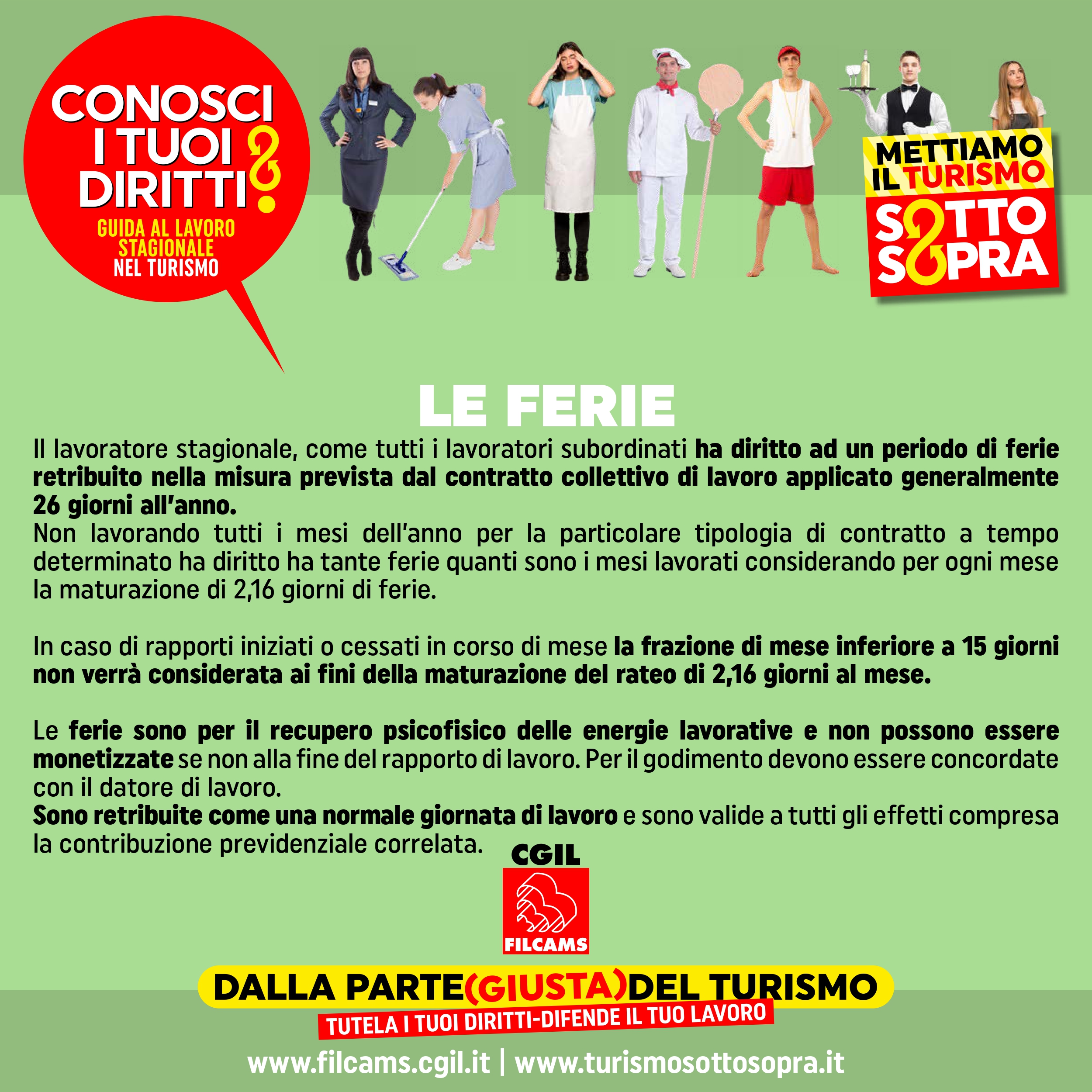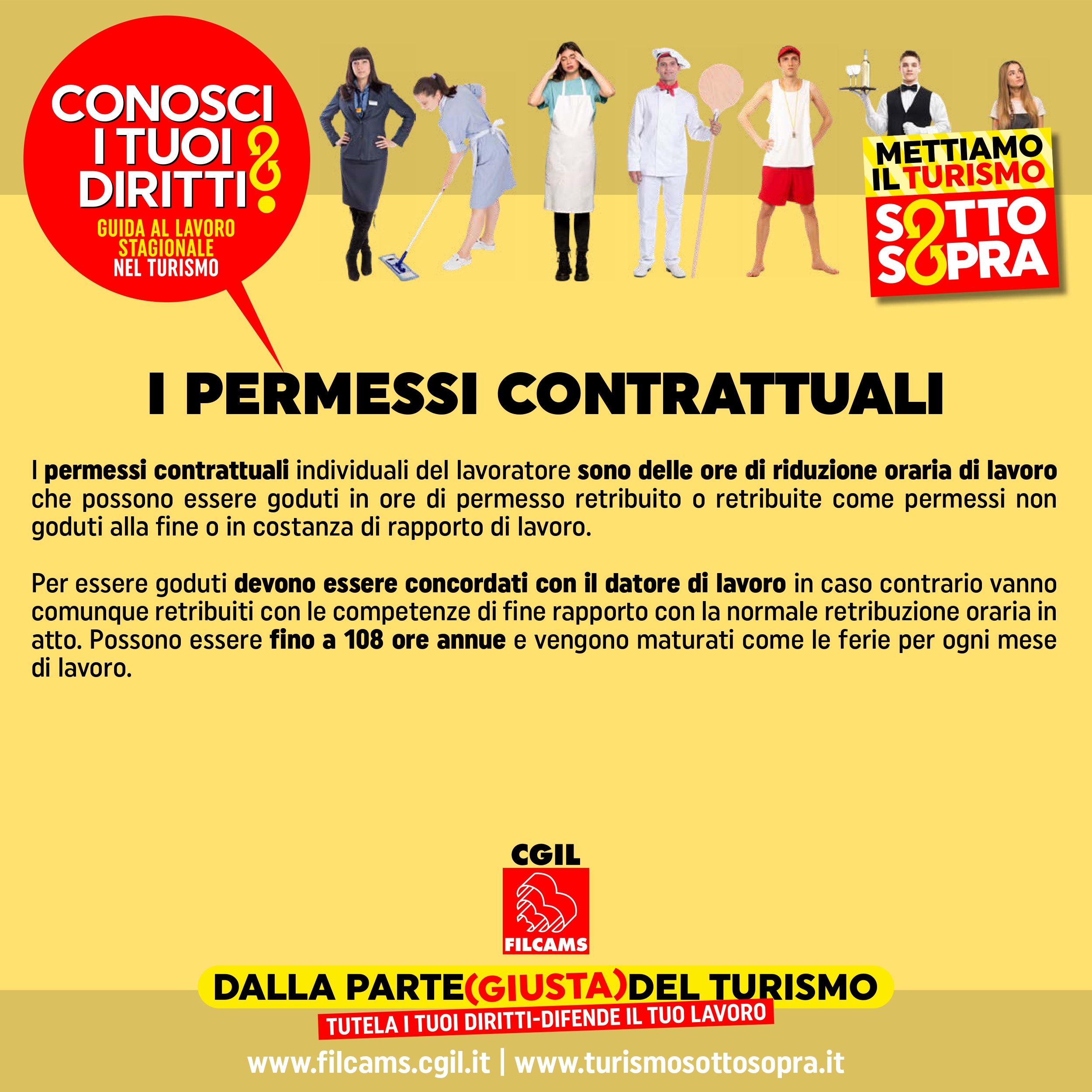 Per controllare il tuo contatore ferie e permessi e ulteriori informazioni contatta la sede Filcams Cgil più vicina a te, cercala su www.filcams.cgil.it