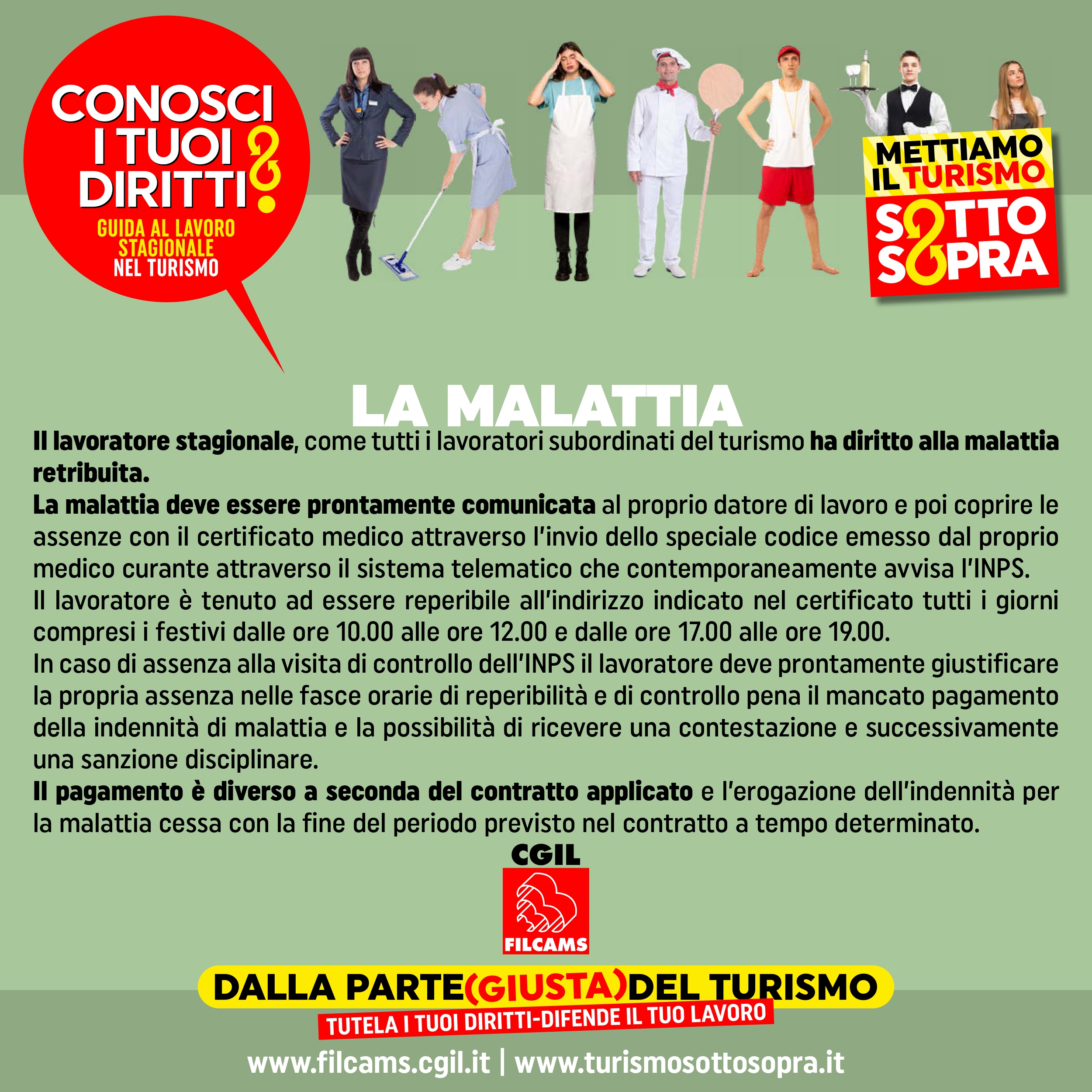 Il lavoratore stagionale, come tutti i lavoratori subordinati del turismo ha diritto alla malattia retribuita .
