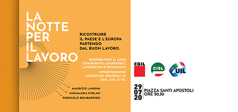 Appuntamento alle ore 20.30 in piazza Santi Apostoli Si terrà questa sera la ‘Notte per il lavoro’, iniziativa promossa da Cgil, Cisl e Uil all’interno di un più ampio percorso di mobilitazione per “ricostruire il Paese e l’Europa partendo dal buon lavoro”. Appuntamento alle ore 20.30 in piazza Santi Apostoli, Roma. Con l’iniziativa di oggi le tre Confederazioni rimettono al centro alcuni temi e...Margherita Distribuzione, riconosciuta dal tribunale di Torino la condotta antisindacale.