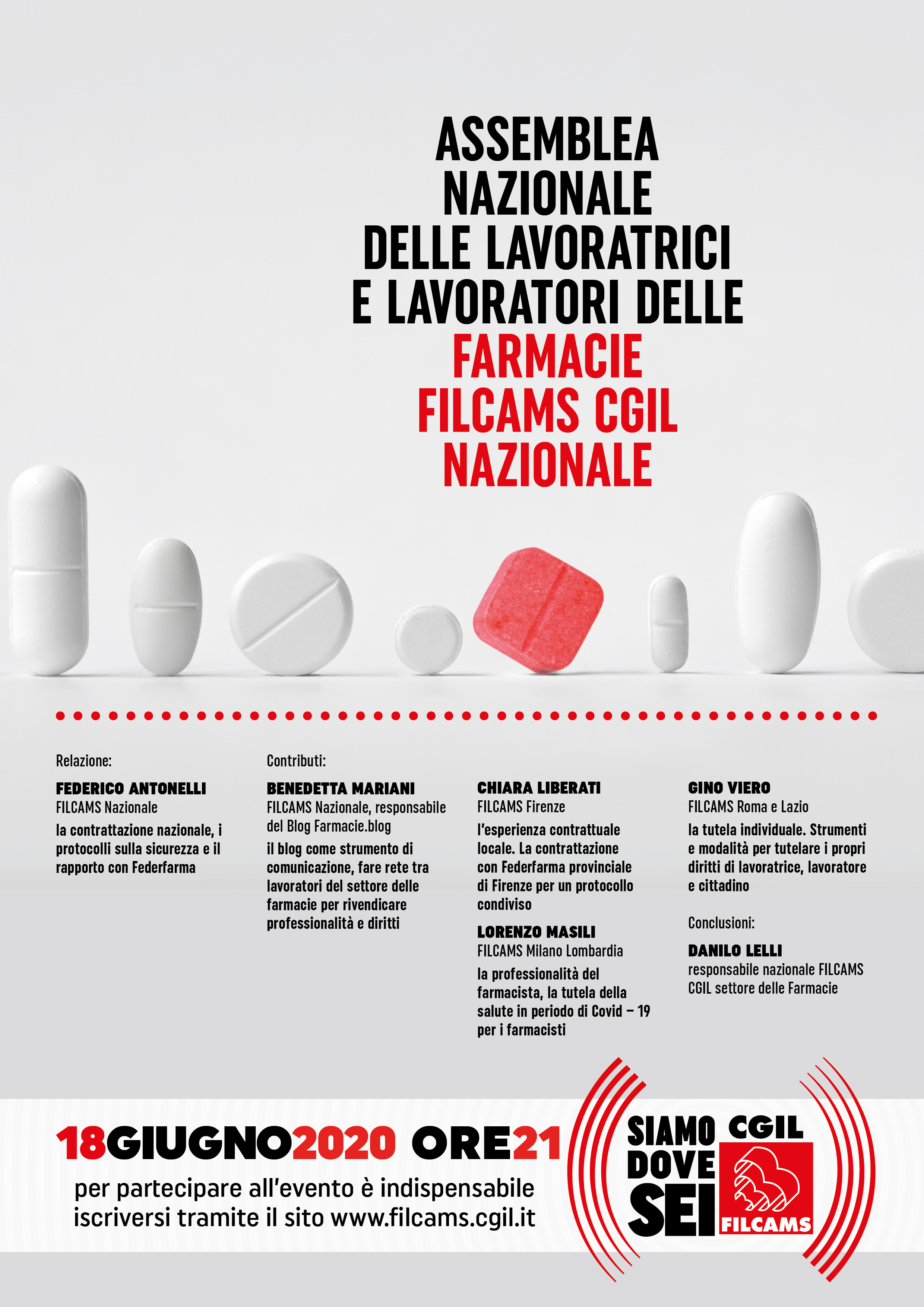Farmacie: il 18 giugno assemblea online delle lavoratrici e dei lavoratori