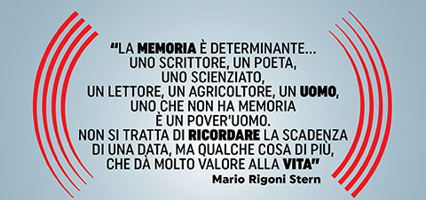 "La memoria è determinante. È determinante perché io sono ricco di memorie e l’uomo che non ha memoria è un pover’uomo, perché essa dovrebbe arricchire la vita, dar diritto, far fare dei confronti, dar la possibilità di pensare ad errori o cose giuste fatte. Non si tratta di un esame di coscienza, ma di qualche cosa che va al di là, perché con la memoria si possono fare dei bilanci, delle considerazioni, delle scelte, perché credo che uno scrittore, un poeta, uno scienziato, un lettore, un agricoltore, un uomo, uno che non ha memoria è un pover’uomo. Non si tratta di ricordare la scadenza di una data, ma qualche cosa di più, che dà molto valore alla vita." (Testimonianza di Mario Rigoni Stern)