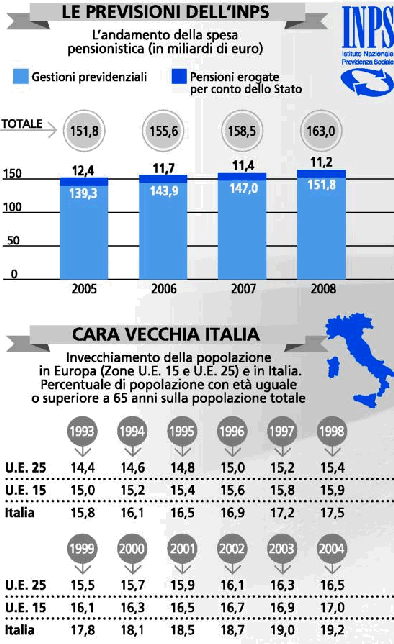 Prodi spera nel funzionamento della misura per aumentare l'et? di pensionamento ?con le buone?, cio? superando lo scalone dai 57 ai 60 anni d'et? voluto dalla riforma Maroni, e allo stesso tempo ottenendo qualche risparmio di spesa. Ed ? cos? convinto della bont? di questa ipotesi che ha dato mandato al fido ministro Giulio Santagata di verificare costi e benefici del progetto insieme ai tecnici dei ministeri interessati. ?L'obiettivo ? ripristinare la legge Dini che si fondava sull'uscita graduale dal mondo del lavoro, in un range compreso tra i 57-58 anni e i 65 anni di et?, gradualit? poi abolita d'un colpo dalla riforma del governo Berlusconi?, conferma Gianni Geroldi, appena nominato da Cesare Damiano alla presidenza del Nucleo di valutazione della spesa previdenziale che fa capo al ministero del Lavoro. ?Una misura come questa - spiega l'economista - pu? servire a dare pi? flessibilit? al lavoratore nella scelta del momento in cui lasciare il posto, ma pu? essere utile anche alle imprese, che grazie ai risparmi in termini di costo del lavoro potrebbero invertire la tendenza a volersi liberare sempre pi? presto dei lavoratori ultracinquantenni?.