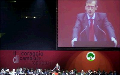 SPECIALE PESARO: I DIESSE A CONGRESSO ROMA- Dalla radio, all'agenzia, dall'italiano all'inglese, dalla preparazione per il viaggio a Santo Domingo dove si riunisce l'Internazionale socialista, all'aereo per andare in Sicilia, dove si vota. Piero Fassino è segretario da una settimana, soltanto da tre giorni ha preso possesso della stanza che fu di Walter Veltroni ed è già nel vortice di impegni e polemiche. Divani bianchi, arredamento "Ikea". Nella libreria a muro non ci sono ancora i suoi libri e sulla scrivania non c'è nulla che possa dimostrare il passaggio di consegne. Non ci sono "tracce" lasciate a proposito per mostrare interessi e direzioni politiche. Soltanto lo schermo piatto di un computer che continua a macinare notizie e un foglio di carta dove segnare gli appuntamenti: ore 12 Amato....