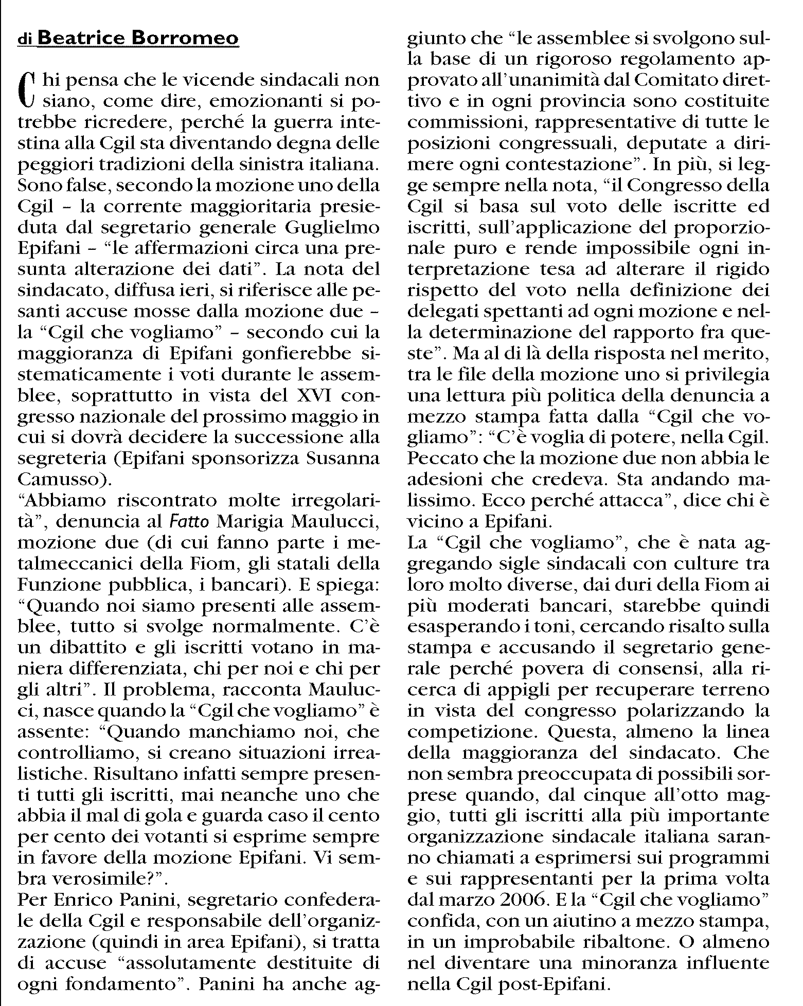 "Accuse false" la Cgil contro la Cgil