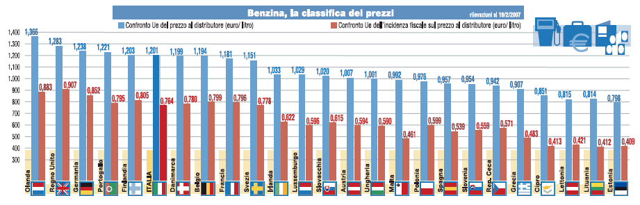 "Benzina" La classifica dei prezzi (tabella)