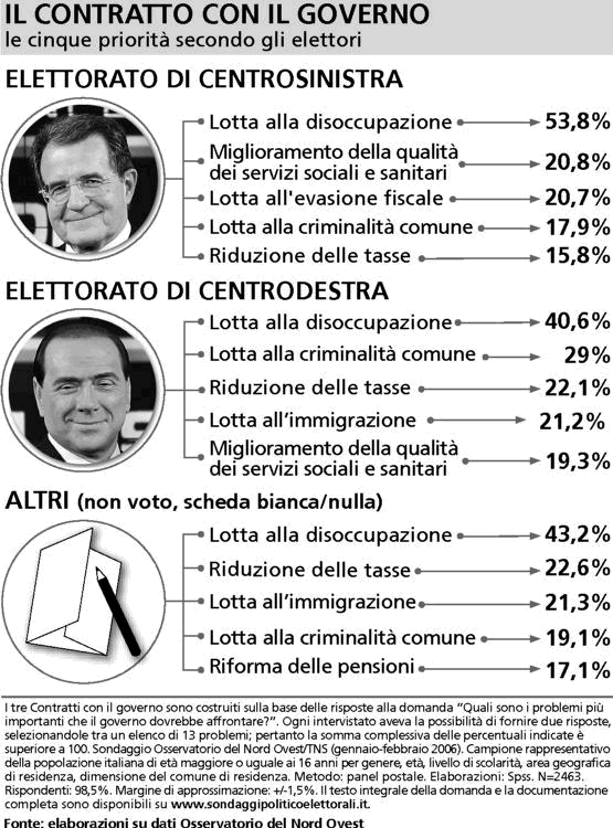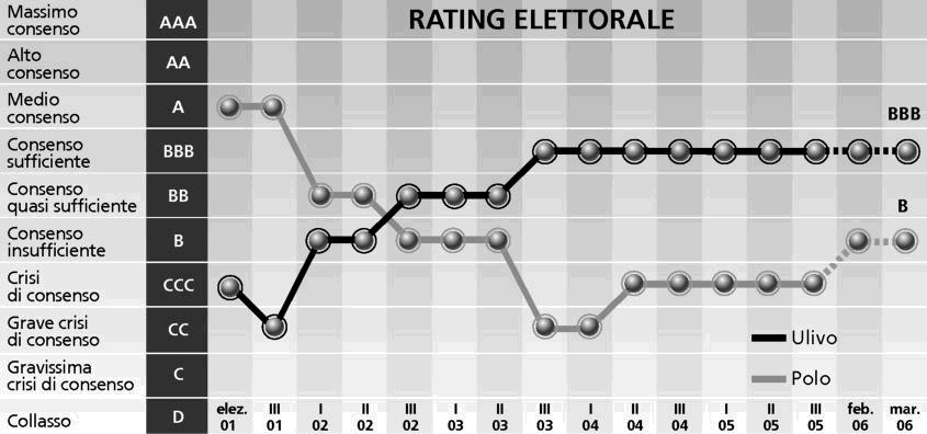 Rispetto alle tendenze di voto, il vantaggio dei partiti facenti capo all'Unione ? oggi ancora stimabile tra il 3 e il 4% dei voti validi, con un maggiore appeal alla Camera, grazie alla presenza dell'Ulivo, un simbolo che evoca quell'unit? tanto agognata dagli elettori di centrosinistra.