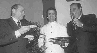 Fa sempre un po’ impressione vedere le immagini dei caduti quand’erano potenti. Nel 2001, Billè tenne a lungo sulle spine Berlusconi. Poi gli promise l’appoggio alle elezioni. L’intesa, nemmeno tanto tacita, venne festeggiata con quattrocento cannoli che il capo dei commercianti fece arrivare dalla sua pasticceria di Messina. Come si vede dalla foto, e specialmente dalla giacca del futuro premier, a colpi di cannolo non s’allargano solo le intese. (Foto LaPresse)
