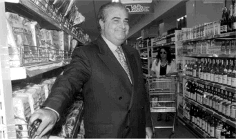 E la storia va a finire. Dal trono al regno: il supermercato. Billè diceva di andare a controllare di persona, specie dopo il passaggio all’euro, che i commercianti non speculassero. Ed è stata proprio la fazione dei supermarket la prima a contestare Billè dopo gli scandali di questi giorni, poi a sfilarsi decretando la caduta dell’impero. Qui Billè sembra presagire il disastro: con la mano destra arraffa un pacco di crackers che nasconderà nel doppiopetto.