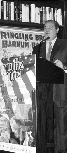 Ecco Billè in versione Joe Pesci durante una conferenza a Manhattan in difesa del tartufo bianco. E’ il 2002. Billè era già stato a New York cinque anni prima, e aveva fornito all’Fbi notizie sulla mafia russa in Italia. Potrebbe essere questa una spiegazione della scritta Barnum che nella foto compare alla destra del presidente di Confcommercio. Nell’occasione disse: «E’ giunto il momento di passare dal fast food al good food». Alla platea plaudente ammise: non è mia, l’ho rubata.