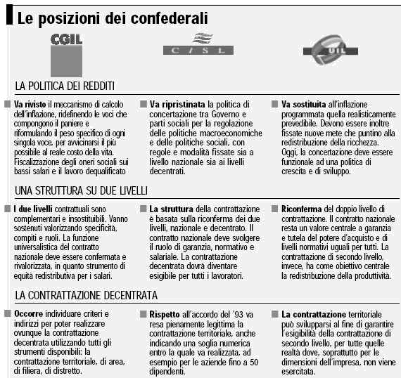 ECONOMIA ITALIANA - Pagina 16 Nel sindacato di Epifani cresce il pressing per trovare un'intesa con Cisl e Uil MILANO • Dopo il no della prima ora, sulla riforma dei contratti la Cgil ci ripensa. Il fronte dei contrari a un confronto immediato tiene ancora la posizione ufficiale del sindacato, ma soprattutto dopo le ultime aperture di Pezzotta la Cgil sembra pronta ad avviare un dibattito interno. Certo, come conferma Gian Paolo Patta, segretario confederale Cgil, se ne « riparlerà durante il direttivo, e c'è da rispettare anche la fase congressuale della Cisl. Tuttavia nulla vieta che intanto si possa avviare un dibattito » . In particolare perché — come aggiunge Nicoletta Rocchi (segretario confederale) — « sarebbe un errore clamoroso non cercare una mediazione con Cisl e Uil » . Un punto di incontro che secondo la sindacalista assume importanza, « al di là della trattativa con il Governo » , ma piuttosto nell'ottica di un ricompattamento del fronte sindacale Questo non vuol dire però che i nodi con le altre due confederazione possono essere facilmente sciolti. Lo mette in chiaro in un articolo pubblicato su Rassegna sindacale, il segretario confederale della Cgil Carla Cantone, che precisa: « A oggi siamo fermi sulle antiche divisioni. L'eventuale anticipo del riallineamento nel secondo livello — spiega Cantone — non può diversificare i minimi contrattuali: il contratto nazionale non può prevedere deroghe a materie che sono proprie di quel livello e che garantiscano parità di diritti per tutti » . Per trovare la « mediazione possibile » , secondo Cantone, « le due commissioni su contrattazione e democrazia devono riprendere il loro lavoro e sentirsi impegnate a una capacità di sintesi unitaria » . Un passo che però a questo punto, Giorgio Santini segretario confederale della Cisl, giudica ormai inutile. « Le commissioni — dice — hanno già concluso tutto il lavoro. Esiste anche un documento di sintesi sulle posizioni delle tre confederazioni. Restano aperte solo due questione: la durata dei rinnovi e le funzioni dei due livelli contrattuali. Su questi due punti devono prendere la parola i segretari generali. Sono loro — conclude Santini — che devono riunirsi e decidere se voglio o meno raggiungere l'intesa » . Un accordo che per Santini, in fondo tra le righe c'è già. Ed allora « anche se la Cgil — dice Achille Passoni, segretario confederale della Cgil — non ritiene che la riforma dei contratti debba essere al centro dell'agenda sindacale, soprattutto in un momento come questo in cui il Paese è in ginocchio, tuttavia se altri ritengono che il problema debba essere affrontato, la Cgil deve essere disponibile a lavorare per un'intesa con Cgil e Uil. Poi se si raggiungerà un accordo, si deciderà dopo cosa fare di questa intesa » , vale a dire come rapportarsi con il Governo. Il tempo per trovare una punto di incontro c'è dal momento che Pezzotta ha ribadito che della riforma si parlerà al termine del congresso Cisl, cioè dopo la prima metà di luglio. Un mese di tempo, nel quale un ruolo potrà giocarlo la Uil. Luigi Angeletti anche ieri è tornato a ribadire come sia prioritario « ridurre le tasse sul lavoro e riavvicinare il sistema contrattuale ai posti di lavoro ». |