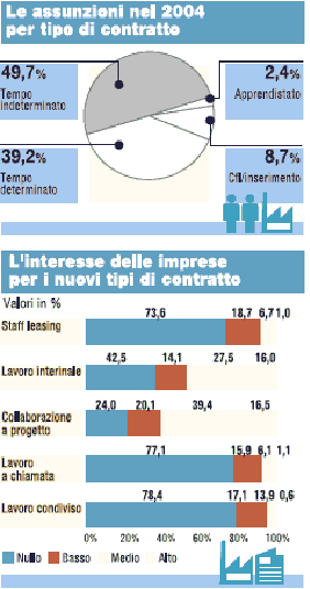 lavoro standard Nel programma presentato sabato scorso l’Unione punta a far s? che la “forma normale” di occupazione sia quella che passa attraverso il contratto di lavoro a tempo indeterminato. Attualmente, secondo la prima indagine della Confindustria sull’attuazione della legge Biagi-Maroni, la met? delle assunzioni avviene con contratto standard