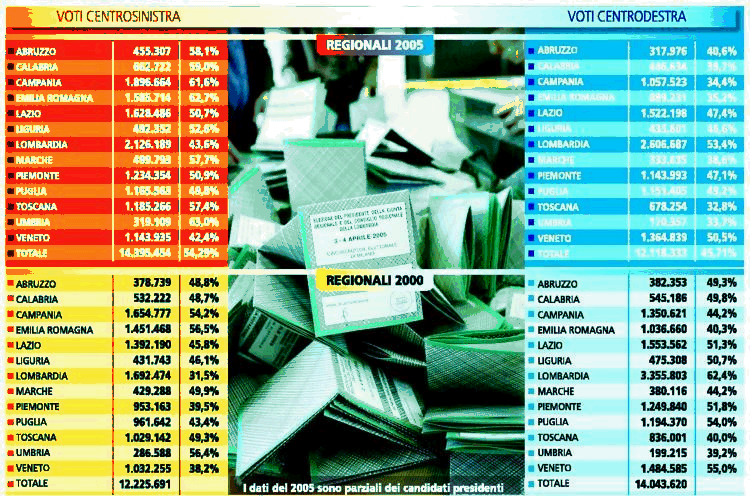 "Regionali 8" Voti Centrosinistra, voti Centrodestra
