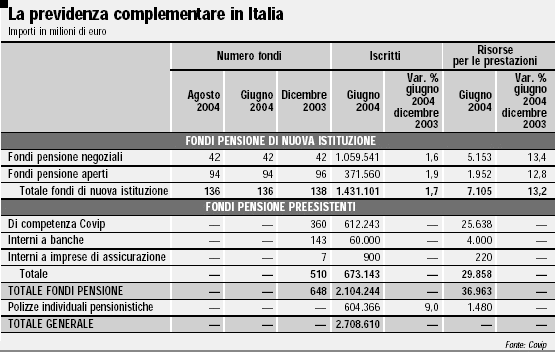Quanto alla natura delle misure che sono in fase di preparazione, Governo sembra orientato a far scattare una drastica riduzione (o una completa abolizione) della tassazione delle "plusvalenze" dei fondi pensione. Il carico fiscale potrebbe cioè scendere a quota 6% o addirittura azzerarsi. A pronunciarsi in materia sarà nelle prossimi giorni l’Agenzia delle entrate. Su questa questione ieri è intervenuto anche il Tiziano Treu (Margherita): «In aggiunta a quanto fatto sino ad oggi occorrerebbe favorire ancora di più i fondi pensione sotto il profilo fiscale». Tornando la pacchetto sulla previdenza integrativa, dovrà anche essere definito il meccanismo che dovrà garantire la "parità" tra fondi pensione chiusi e aperti e le polizze assicurative individuali, sostanzialmente prevista dalla riforma pensionistica. A questo proposito, le disposizioni attuative avranno anche il compito di chiarire definitivamente quali saranno i compiti di controllo della Covip (la Commissione di vigilanza sui fondi pensione) proprio in relazione all’attivazione di un meccanismo unificato di controlli per fondi pensione e polizze individuali.