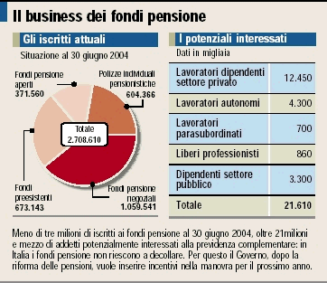 Proprio per giungere puntuale all’appuntamento del 1 gennaio 2005 al Tesoro si sta pensando di inserire tutto il pacchetto nello strumento legislativo che verrà scelto per varare la riforma fiscale (emendamento alla finanziaria o decreto). Una soluzione della quale si starebbe convincendo anche il ministero del Welfare.