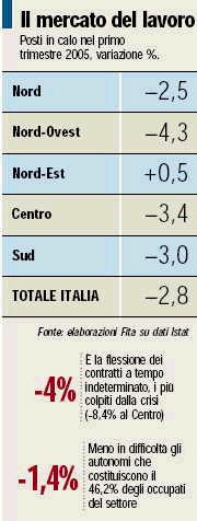 ECONOMIA ITALIANA - pagina 15 Il terziario perde 69mila posti in tre mesi Ma resta positivo l'andamento annuo: + 6,1% a marzo MICHELA DELL'AMICO Il dato è in controtendenza con la base annua, che segna una crescita del 6,1% da marzo 2004 a marzo 2005, per un settore che occupa un milione e ottocento mila persone, nel quadro di un andamento generale dell'economia che ha registrato un + 1,4% nello stesso periodo. A mantenere buono l'andamento annuo del terziario avanzato giocano un ruolo chiave il Sud e le isole, ultimo il Nord Est. I dati sono stati rilevati dall'Istat ed elaborati dalla Fita, la Federazione italiana del terziario avanzato per i servizi innovativi e professionali, aderente a Confindustria. Sanità, turismo, spettacolo, trasporti, educazione. I servizi rappresentano i due terzi del Pil italiano, coinvolgono un gran numero di lavoratori e un alto consumo di beni industriali ad alto contenuto tecnologico. Il terziario rappresenta così lo spazio di opportunità al quale si rivolge la vasta platea di quanti sono in cerca di occupazione. Oltre e più della Pubblica Amministrazione, i servizi privati, la finanza, le attività intellettuali e i servizi professionali hanno sempre mantenuto alta la loro capacità di assorbimento. E i servizi innovativi, piuttosto che il settore manifatturiero, in crisi evidente nonostante un 22,8% di occupati, rappresentavano una importante possibilità di rimonta per il futuro. Imprevista invece la brusca sterzata, sebbene da tempo la Fita auspicasse un mix di politica industriale e di politica digitale, per sostenere l'innovazione nei servizi. La situazione nel dettaglio ha visto diminuire gli occupati, nei primi tre mesi del 2005 rispetto al triennio precedente, del 3,4% nel Centro Italia, al Sud e nelle isole del 3% e al Nord del 2,5%. A reggere solo il Nord Est che, unico caso, ha mantenuto un leggero aumento: un trend positivo pari allo 0,5 per cento. Poco consolante, se si considera che l'occupazione nel terziario avanzato, anche nei periodi di maggior stallo, ha registrato una crescita di occupati almeno dell' 1 per cento. I contratti a tempo indeterminato sono stati i più colpiti, con un 4%, soprattutto al Centro ( 8,4%) e nel Nord Ovest ( 4,4%). Gli indipendenti sembrano essere il nuovo futuro del settore, arrivando a ricoprire, con un calo relativamente lieve ( meno 1,4%), il 46,2% del totale degli occupati. Considerati un fattore di sviluppo e di rilancio per ogni economia moderna, tanto che la Gran Bretagna li ha adottati come unico modello vincente in contrapposizione all'industria, i servizi hanno garantito in Italia, negli ultimi 25 anni, una percentuale di crescita superiore alla media europea, l' 1,5% contro l' 1,3%, in linea con gli Stati Uniti. Marco Fortis, docente di Economia industriale alla Cattolica di Milano ed esperto di distretti, ha associato i problemi italiani alla lenta ed imperfetta attuazione del processo di deindustrializzazione e quindi ad una non puntuale conversione nel terziario. Tra le regioni che trainano il settore dei servizi ci solo il Sud e le isole, con 11,6%, poi il Centro con un + 8,8%, il Nord Ovest con un 3,1% e, ultimo, il Nord Est, che ha visto più occupati per un 2,6 per cento. |
