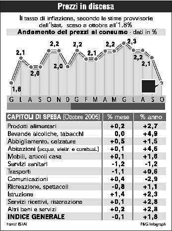 Pagina 15 - Economia & Lavoro FRENATAFrenano i prezzi al consumo, calano sotto la soglia del 2% e contengono la crescita a un 1,8% tendenziale. La stima preliminare dell’Istat attesta il -0,1% in ottobre su base mensile. Era da giugno 2005 che l’indice non registrava una variazione cos? modesta. La riduzione deriva essenzialmente dai prezzi di energetici e sanitari, entrambi in calo. E, sempre grazie a prezzi energetici pi? contenuti, decelera l’inflazione in tutta la zona Ocse, con un calo tra agosto e settembre dello 0,1%. Ma torniamo all’Italia: il comparto energetico ha registrato ad ottobre una flessione del 2% rispetto a settembre, e un aumento annuale dell’1,4%, in netto rallentamento rispetto al +5,9% di settembre e agli incrementi in molti casi superiori al 10% registrati nei mesi precedenti. A diminuire ? stata soprattutto la componente cosidetta non regolamentata, di cui i carburanti fanno parte: rispetto a settembre, il calo ? stato del 4,2% e rispetto ad ottobre 2005 del 5%. Cos?, i prezzi della benzina sono diminuiti del 5,2% rispetto a settembre e del 7,5% rispetto a ottobre 2005; quelli del gasolio del 5,3% rispetto a settembre e del 7,1% su ottobre dell’anno scorso. Pi? in generale, il capitolo trasporti ha registrato un calo dell’1,1% rispetto a settembre e un aumento contenuto dello 0,6% rispetto ad ottobre dello scorso anno. Per la componente regolamentata (tariffe del gas e dell’energia elettrica), si sono invece registrati altri aumenti, sia su base mensile (+0,7%), sia su base annulae (+10,4%). Le tariffe energetiche, in particolare, hanno segnato un rincaro congiunturale dell’1,3% e tendenziale del 14%. Per i medicinali, l’Istat ha rilevato una diminuzione mensile del 3,3% e annuale del 6,9%. Un contributo inflazionistico ? invece arrivato da alimentari e servizi. I primi hanno segnato un incremento del 2,7% su base annua e dello 0,2% su base congiunturale. I servizi, per quanto riguarda le spese per istruzione, hanno accusato una crescita del 2,3% annuale e dell’1,4% mensile. Ad oggi, il tasso di inflazione acquisito per il 2006, spiega l’Istat, risulterebbe pari al 2,1%. Ed ? la stessa stima anche dell’Isae. Tutti dati che non temperano lo scetticismo di Confcommercio e consumatori, per i quali conviene essere prudenti e verificare se terminato l’effetto petrolio non ci sia una nuova ripresa dei prezzi al consumo. Adusbef e Federconsumatori tornano a dubitare dell’attendibilit? degli indicatori e ritengono opportuno che l’Istat diffonda anche dati inflattivi ?legati ai redditi delle diverse fasce sociali dei cittadini?. Chiedono anche che ?si faccia finalmente chiarezza su quanto avvenne nel 2002, al momento del cambio lira-euro, quando un intero scalone inflattivo non venne registrato, tanto che le trasciniamo ancora oggi?. Ancora qualche dato: gli incrementi tendenziali pi? elevati si sono registrati nei capitoli Bevande alcoliche e tabacchi (+4,9%), Abitazione, acqua, elettricit? e combustibili (+4,6 %), Servizi ricettivi e di ristorazione e Altri beni e servizi (+2,8 %). Variazioni tendenziali negative nei capitoli Comunicazioni (-2,9%) e Servizi sanitari e spese per la salute (-1,2 %). Quanto agli aumenti congiunturali, quelli pi? significativi si sono verificati per i capitoli Istruzione (+1,4 %), Abbigliamento e calzature (+0,5%) e Comunicazioni (+0,4 %). Variazione nulla per Bevande alcoliche e tabacchi, negativa per Servizi sanitari e spese per la salute (-1,2 %), Trasporti (-1,1%) e Ricreazione, spettacoli e cultura (-0,8 %). |