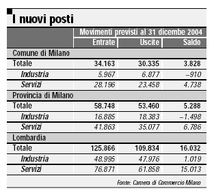 Previsti 3.828 nuovi posti entro il 2004, il dato più basso dal 2001 Milano, frena l’occupazione
