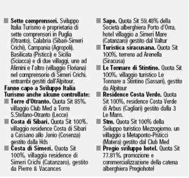 venerdì 24 dicembre 2004 sezione: ECONOMIA ITALIANA - pagina 15 IL BUSINESS DELLE VACANZE • Banca Intesa, Ifil e gruppo Marcegaglia rilevano il 49% di Sit da Sviluppo Italia Nasce il polo italiano del turismo L'ingresso dei privati con un investimento di circa 80 milioni di euro L'obiettivo: attrarre due milioni di visitatori Qualche dettaglio operativo dell'accordo, che rimane in attesa del via libera dell'Antitrust. L'ingresso dei tre soci privati nella Sit avverrà attraverso la società Turismo&Immobiliare (partecipata in quote uguali da Banca Intesa, Ifil e Marcegaglia; advisor della nuova società è Mediobanca), la quale acquisterà azioni e sottoscriverà un aumento di capitale della Sit (aumento pari a 60 milioni di euro) per un importo complessivo di 76,4 milioni. I tre nuovi soci potranno raggiungere il controllo azionario della Sit entro il 2009, ed è prevedibile l'apertura a nuove adesioni. Il primo passo concreto della Sit sarà l'avvio del programma di investimenti in Puglia, Calabria e Sicilia mirato a formare poli turistici integrati. In altre parole, il piano prevede la costruzione (o l'ammodernamento) di strutture turistiche per 5mila camere e sei campi da golf, pari a un investimento di 206 milioni (l'ipotesi complessiva era sui 320 milioni) e un impatto occupazionale di oltre 5mila addetti a regime. L'obiettivo è attrarre almeno due milioni di turisti. Il programma è stato approvato dal Cipe (Comitato interministeriale di programmazione economica) con un contributo di 142 milioni. Conferma l'amministratore delegato di Sviluppo Italia, Massimo Caputi, che un anno fa la società aveva due progetti: i poli turistici integrati e la privatizzazione. «Oggi, dopo un anno, abbiamo centrato entrambi gli obiettivi: l'entrata nel capitale di tre prestigiosi soci privati come Banca Intesa, Ifil e Marcegaglia che hanno creduto nella validità del progetto di rilancio del turismo — osserva Caputi — e l'approvazione da parte del Cipe del progetto dei primi poli turistici integrati. Inoltre, Sviluppo Italia Turismo sta predisponendo nuovi progetti di investimento che saranno messi in cantiere nei prossimi mesi». Secondo Gaetano Miccichè, responsabile corporate di Banca Intesa, «il turismo è un settore cardine dell'economia italiana: dal punto di vista del fatturato e dell'indotto, il settore rappresenta una parte significativa del Pil. Ma è un segmento economico che ha perso posizioni significative nei confronti di Paesi concorrenti come Spagna, Francia e anche Germania. Per questo motivo, osserviamo con attenzione un settore così importante e che al tempo stesso è composto da società malate di sottocapitalizzazione, di mancanza di strategie puntuali di business e di focalizzazioni manageriali e di scelte strategiche in funzione del business. Con questo progetto, abbiamo l'opportunità, insieme con altri due operatori italiani di primissima qualità, di partecipare alla privatizzazione di una società che ha progetti già realizzati e altri da realizzare, non solo con l'obiettivo del ritorno economico ma soprattutto per creare il "motore primo" delle iniziative turistiche in Italia». |
