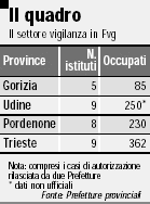 La vigilanza privata sta soffrendo di riflesso la crisi di molte piccole aziende, soprattutto commerciali, costrette a tagliare i costi della sicurezza. Crescono, parallelamente, gli ambiti di operatività, con sempre maggiori contratti di servizio con enti pubblici e, da poco, anche con le forze armate. Le imprese di vigilanza privata del Friuli-Venezia Giulia possono così registrare una sostanziale tenuta congiunturale, sia in termini di fatturato che occupazionale, andando verso forme di aggregazione per competere con i grossi gruppi nazionali e internazionali. In regione il comparto vale un fatturato di 50 milioni: il 25% dal settore pubblico e parapubblico, il 3% dai privati e il 72% dalle imprese. Tre, infatti, le aree di operatività. La prima è quella degli enti pubblici: aeroporti, stazioni ferroviarie e da un paio di anni anche l’esercito, che con l’introduzione del servizio volontario ha preferito affidare la sorveglianza di alcuni siti ad appalti esterni. In regione attualmente sono tre le postazioni presidiate con un impegno di una cinquantina di addetti. E dopo l’esercito potrebbero arrivare anche i contratti con Aeronautica e Marina. Trieste assorbe la metà del segmento per l’alta concentrazione di sedi di istituzioni in città. In forte crescita anche la domanda dei privati, legata a una maggiore esigenza di sicurezza, con un aumento dei contratti nell’ordine del 15-20% all’anno; ad avanzare richieste di pattugliamento sono anche interi quartieri, in cui i residenti realizzano quindi una forma di contratto "consortile", come a San Daniele e Villa Primavera. In sofferenza, invece, il segmento commerciale (negozi, artigiani e piccole imprese); recessione dal contratto di sorveglianza, fallimenti e insolvenze sono i segnali della crisi. «I diversi settori, però, si compensano e il trend è stabile con tendenza alla crescita — commenta Giovanni Claudio Magon, rappresentante della Univ, una delle associazioni di categoria — nell’assunzione di personale si cercano figure professionali più raffinate, adeguate all’utilizzo della nuova tecnologia e ai servizi specialistici che ci vengono richiesti. Privilegiati sono sempre gli ex militari di carriera, mentre le donne sono ancora poche, ma ben motivate. Il freno per i giovani alla professione non è tanto lo stipendio, quanto gli orari di lavoro». Molte le questioni sollevate a livello sindacale. «I problemi delle guardie giurate sono sempre gli stessi — commenta Franco Pellegrino, rappresentante regionale del Savip — ovvero stipendi bassi, carico di lavoro eccessivo e garanzia dell'incolumità non adeguata. E l’introduzione della "banca ore" non risolve l'abuso del ricorso agli straordinari». La categoria, inoltre, chiede il riconoscimento professionale: «Da tempo chiediamo la creazione di un albo a cui si acceda dopo aver seguito corsi autorizzati dal Ministero, che prevedano anche l’esame finale». Insomma, il settore è in trasformazione, come dimostra anche il passaggio di diverse aziende, nell’ultimo decennio, sotto il controllo di gruppi nazionali. Un trend favorito dalle fusioni bancarie: gli istituti di credito preferiscono contrarre appalti per macroaree geografiche.