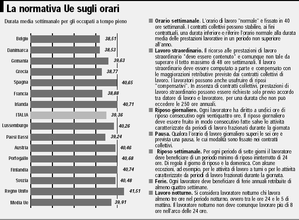 Oggi la verifica tra il Governo e i confederali sul recepimento delle regole comunitarie nei contratti Orari modello Ue sotto esame |