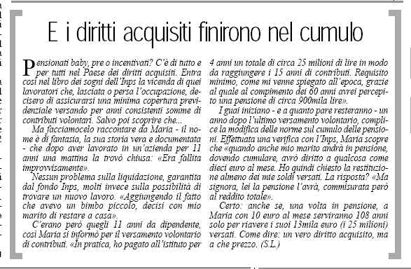 Si tratta dell'allungamento da 15 a 20 anni del requisito contributivo minimo per la prestazione di vecchiaia, che ha scoraggiato il ricorso alla prosecuzione volontaria e dell'introduzione del principio del cumulo col reddito del coniuge, che ha reso incerta la corresponsione dell'integrazione in aggiunta della pensione a calcolo.