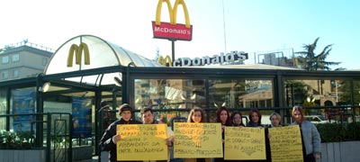 ROMA - Tremare dal freddo e preparare hamburger, scusarsi con i clienti che protestano e spostare da un piano all'altro scatoloni di patatine, ketchup e maionese. E' l'ordinaria amministrazione degli addetti alle vendite, al confezionamento e alle pulizie di un McDonald's al nord della Capitale, in via di Bravetta, che oggi per tutta la giornata hanno deciso di incrociare le braccia e scioperare. "Non ce la facciamo più a lavorare in queste condizioni. Da mesi ci lamentiamo con il datore di lavoro ma non c'è nessun cambiamento. Ogni volta la risposta è che bisogna stringere i denti e bisogna fare le cose tutti insieme. Il problema però è che qui noi i denti li battiamo e basta, e i manager poi dei nostri disagi se ne fregano". L'impianto di ocndizionamento dell'aria è infatti rotto da tempo, così come l'ascensore disabili che funge anche da montacarichi ed eviterebbe agli operai del fast food di improvvisarsi facchini, ogni volta che arriva il camion delle provviste.