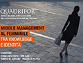 Il prossimo 24 novembre a Roma, Quadrifor ha organizzato un convegno dal titolo “Middle Management al femminile”, uno sguardo sul ruolo della donna Quadro e le sue competenze. Partendo da un punto di osservazione interno, il tema sarà affrontato con rappresentanti qualificati del mondo della formazione, delle istituzioni e dei media ed anche con realtà internazionali. L’apertura lavori è èrevista per le 9.30 con una breve introduzione di Maria Luisa Coppa, Vice Presidente Confcommercio e Vice Presidente Quadrifor. A seguire l’intervento di Paolo Andreani, Presidente Quadrifor: “Quadrare il cerchio”; Roberto Savini Zangrandi, Direttore Quadrifor affronterà il tema “Knowledge e identità nella formazione del Middle Management” mentre Pierluigi Richini, Responsabile Area Studi e Formazione Quadrifor presenterà la ricerca “Esiste una specificità manageriale al femminile?”. Alle10.45 è prevista la tavola rotonda alla quale parteciperanno: Giuseppe Roma, Senior Advisor Fondazione Censis; Luisa Rosti, Professore Ordinario di Politica Economica Università di Pavia; Jole Vernola, Direttore Centrale Politiche del Lavoro e Welfare Confcommercio; Brunetto Boco, Segretario Generale UILTuCS Uil; Maria Grazia Gabrielli, Segretario Generale Filcams Cgil; Pierangelo Raineri, Segretario Generale Fisascat Cisl. Coordina il dibattito Monica D’Ascenzo, Giornalista de Il Sole 24 Ore