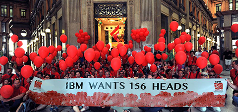 Dopo lo sciopero a Torino e a Milano, il 7 luglio scorso a Roma, un gran numero di lavoratori si sono riuniti per un Flash Mob presso la Galleria Alberto Sordi, muniti di palloncini e magliette rosse e uno striscione con la Scritta “Ibm wants 156 heads”, “Ibm vuole 156 teste”. L’iniziativa, svolta in luogo conosciuto per un maggior coinvolgimento del pubblico, si è spostata in Campidoglio. Al termine della protesta, sono stati lanciati in aria 156 palloncini rossi.