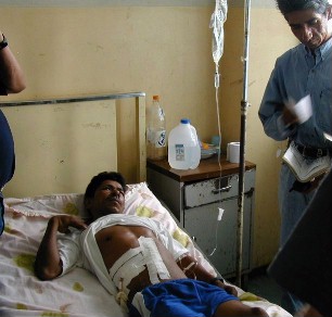 Una delle persone armate in attesa di fare fuoco sui lavoratori (photo courtesy of SiD) Un lavoratore della piantagione ferito ricoverato in ospedale (photo courtesy of SiD) |