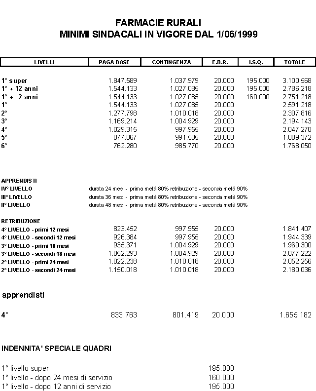 FARMACIE RURALI - MINIMI DAL 1/06/1999