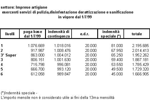 IMPRESE DI PULIZIA ARTIGIANE - MINIMI DAL 1/07/1999