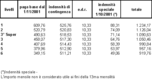 IMPRESE DI PULIZIA ARTIGIANE - MINIMI DAL 1/11/2001 - EURO