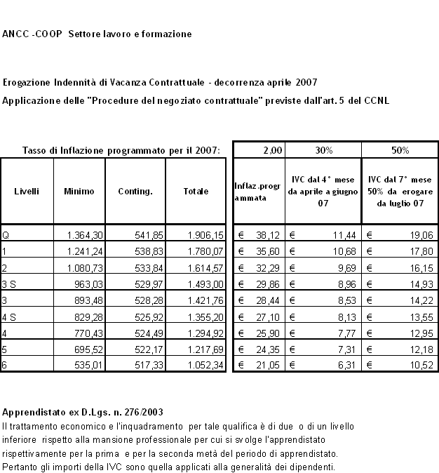 CCNL Distribuzione Cooperativa - IVC aprile e luglio 2007