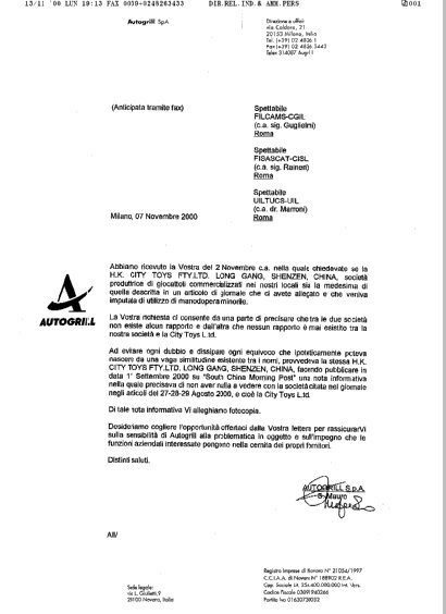 GIOCATTOLI AUTOGRILL - RISPOSTA SU CITY-TOYS
