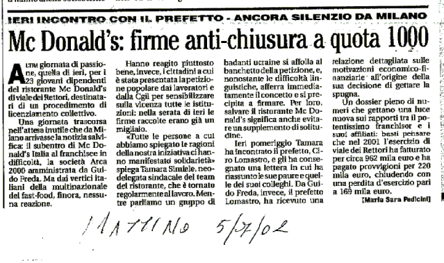 McDonald's: firme anti-chiusura a quota 1000
