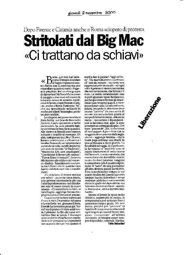 Stritolati dal Big Mac, 2 novembre 2000, Liberazione